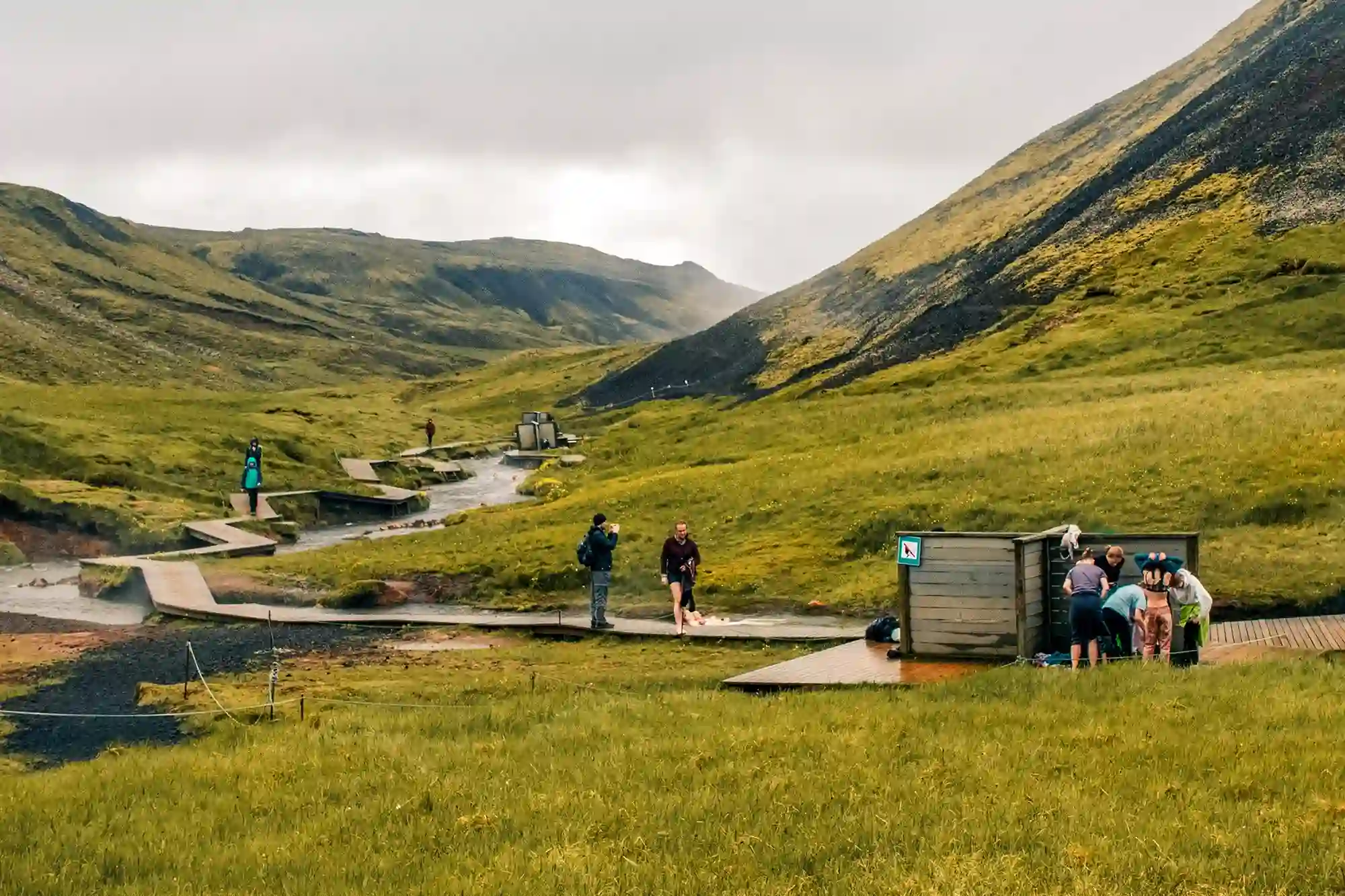 Im Süden liegt das Reykjadalur-Tal mit einem heißen Fluss – zu erreichen über eine einstündige Wanderung. Es ist ein sehr naturverbundenes Erlebnis und kostenlos.