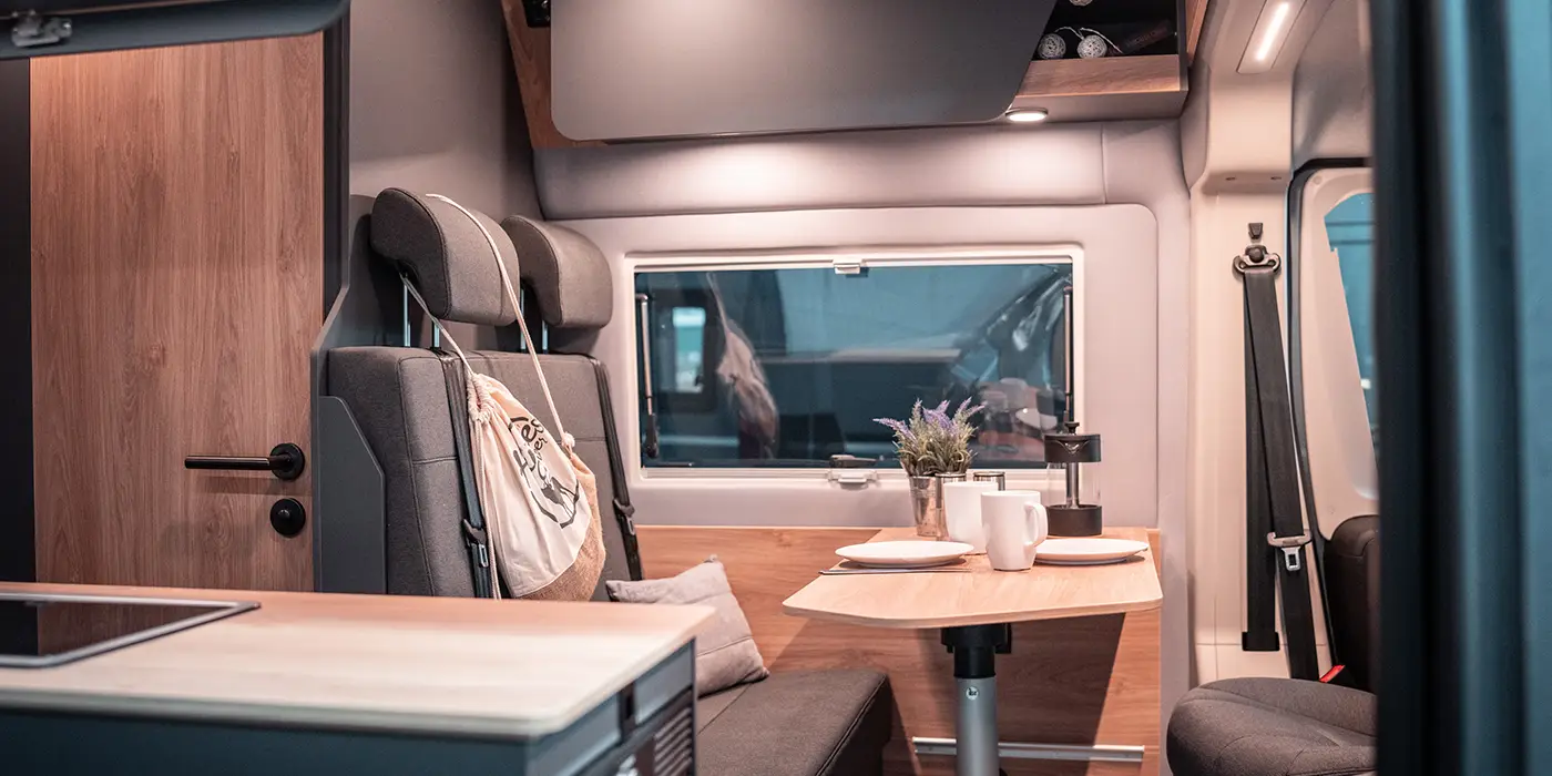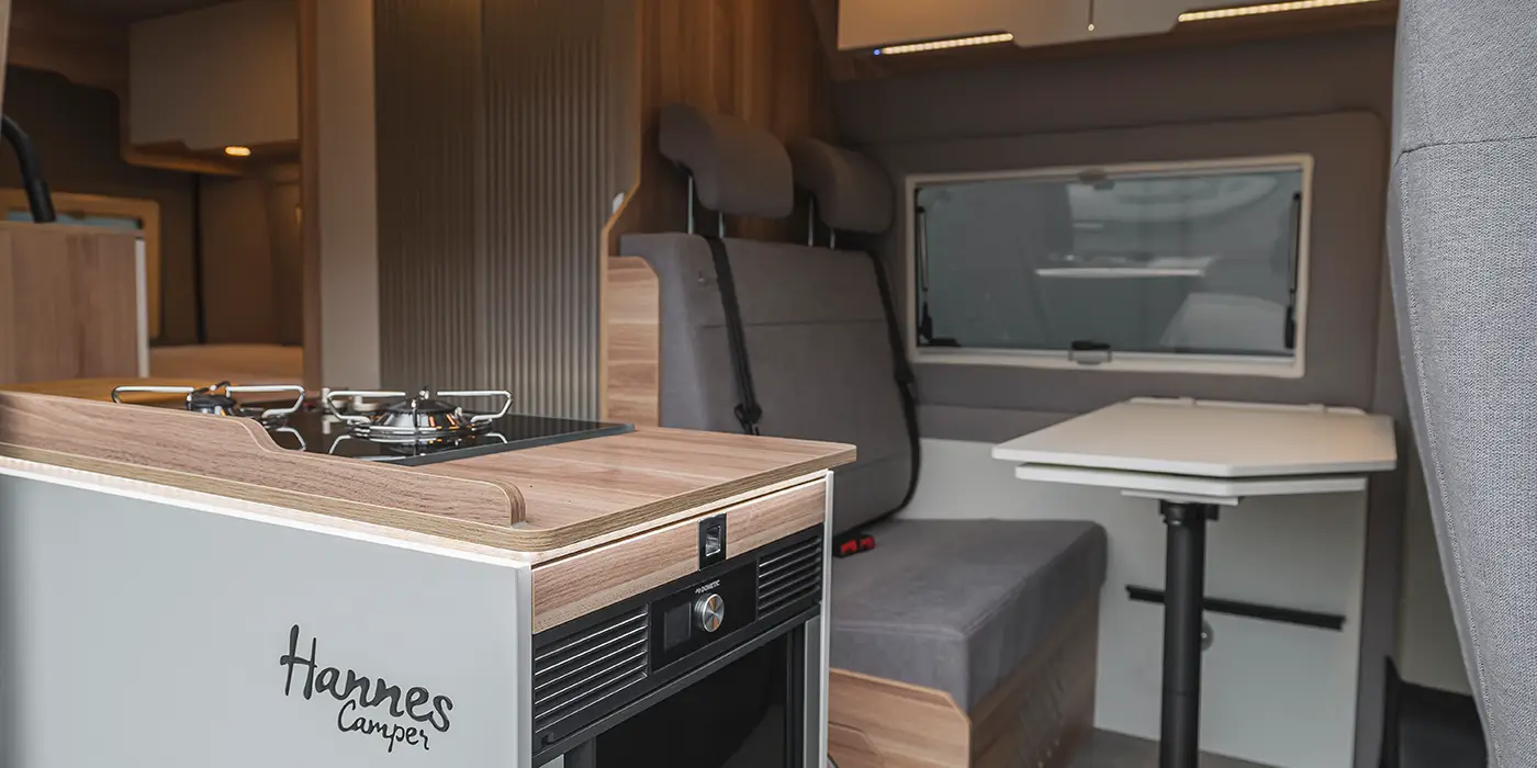 Unser Großer Hannes Automatik ist das perfekte Reisemobil, wenn ihr auf die leisesten Innengeräusche und hochwertigen Möbelbau wert legt. Innen sehr geräumig und außen superkompakt. Unser Hannes Camper ist die ideale Kombination aus modernem Interieurdesign, technischer Perfektion und komfortabler Ausstattung.