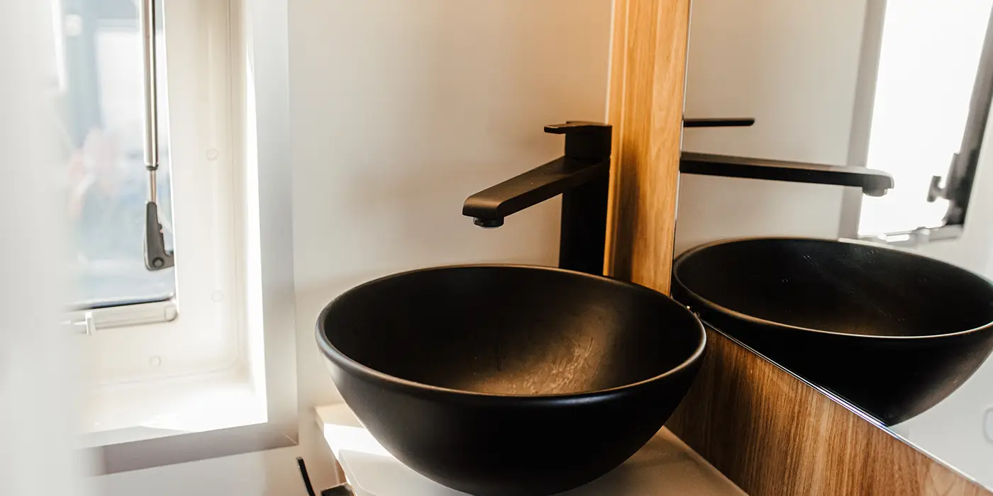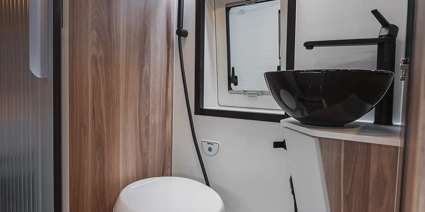 Euer Heckbett hat eine Liegefläche von 190×190 cm. Das funktionale Duschbad mit Fenster ist mit WC und Waschbecken komfortabel ausgestattet. Die Küche bietet Euch neben viel Stauraum, einen 70l Kühlschrank inkl. 6l Gefrierfach, einen 2-flammigen Gasherd, eine Spüle sowie eine großzügige Arbeitsplatte mit flexiblen Auszügen.